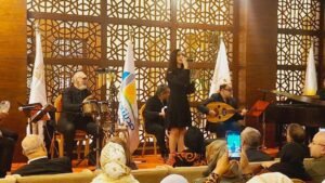 ومن مفاجآت الحفل عزف مقطوعات موسيقية من تأليف الفنان إيهاب عز الدين منها مقطوعة سندباد.. وأيضا غناء الموهبة الصاعدة أميرة التي قدمت أغنية للمطربة ماجدة الرومي وكذلك أغنية للفنانة فيروز فلاقت تفاعل الحاضرين واستحسانهم.