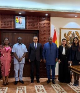 التقى السفير وائل فتحى، سفير جمهورية مصر العربية لدى غانا مع رئيس الجمهورية الغانية الرئيس “جون مهاما”، حيث قام بتسليمه رسالة من فخامة الرئيس عبد الفتاح السيسى حول انضمام مصر لمبادرة إعادة تفعيل أكرا التي أطلقها الرئيس الغاني كمنصة لتطوير التعاون التنموي وتحقيق التنمية الشاملة. يأتي ذلك فى ضوء الحرص على تعزيز التعاون مع دول الجنوب والدول الأفريقية والبناء على العلاقات التاريخية الممتدة يين مصر وغانا.