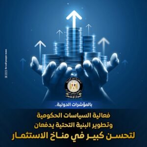 ويأتي هذا التحسن في دلالة واضحة على نجاح جهود الدولة في تحسين بيئة الأعمال وتعزيز ثقة المستثمرين، حيث واصل مناخ الاستثمار تحقيق تقدم ملحوظ على المستوى الدولي، مدعومًا بإصلاحات اقتصادية ومؤسسية ومشروعات بنية تحتية كبرى نُفذت خلال السنوات الأخيرة، أسهمت في تعزيز قدرة الاقتصاد على جذب الاستثمارات وتحقيق مستويات أعلى من التنافسية والاستقرار.
